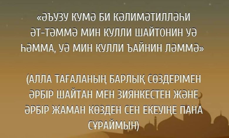«Аллаһым! Мен сенімен әрбір көздің, әрбір қызғанышты адамның, әрбір шайтанның және өзімді зияннан қорғау үшін паналаймын.»