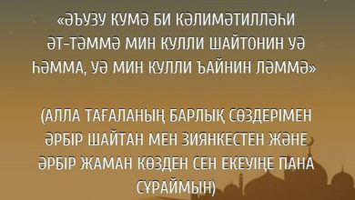 «Рахман және Рахим Алланың атымен. Алла! Осы сәтті берекелі етіп, мені әртүрлі жамандықтан сақта. Осы күнде маған жақсылық пен береке бер».
